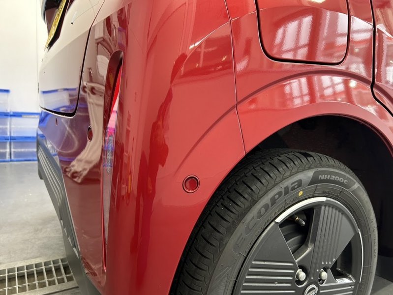 福岡県福岡市西区|サクラ(日産)のキズ・へこみ直し事例(右後ろ タイヤ上(フェンダー)バンパー 車 修理 鈑金 キズ ヘコミ)