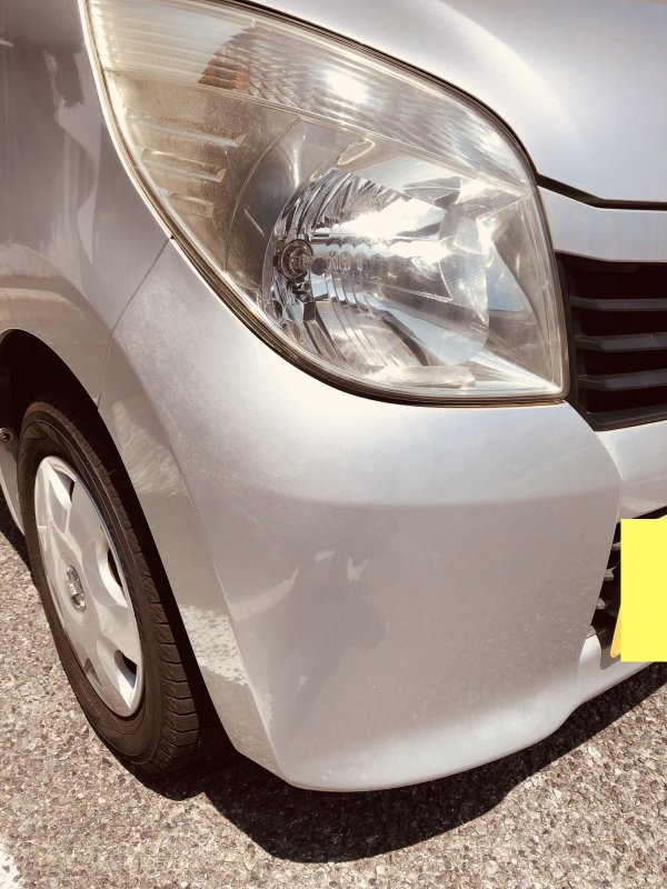フロントバンパーのクリア塗装が経年劣化により色褪せてしまい、修理のご相談でご来店頂きました。