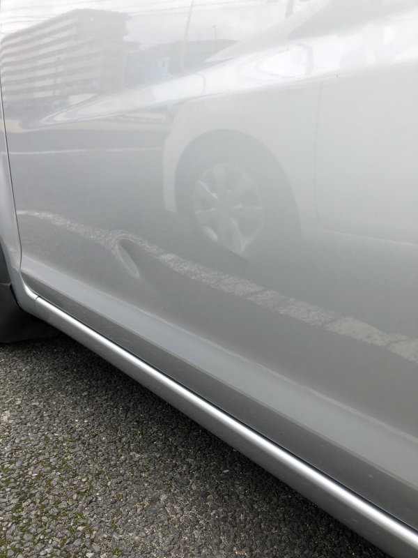 ロッカーパネルにへこみキズがあり、パネルが若干歪んでいます。
