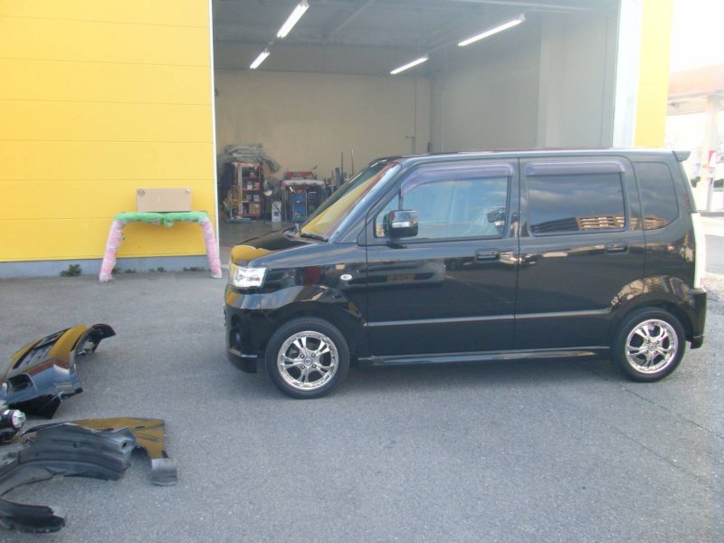 山口県長門市|ワゴンR スティングレー(スズキ)のキズ・へこみ直し事例(①フロントバンパー ②左ヘッドライト ③左フロントフェンダー)