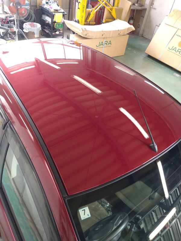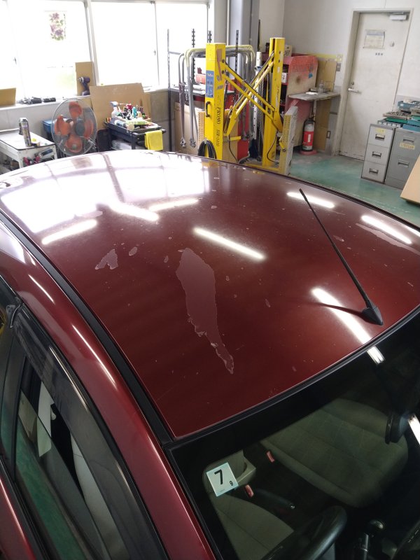 山形市 デミオ キズ ルーフ塗膜劣化による再塗装