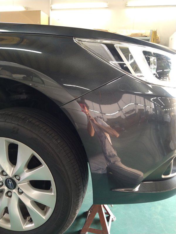 山形市 レガシー キズ へこみキズ修理 Fバンパー フェンダー修理)