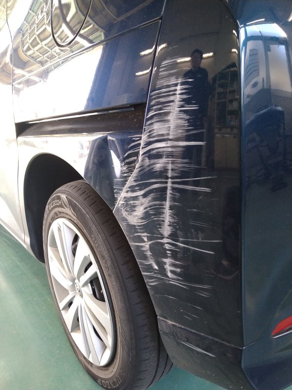 見た目よりひどい損傷でした。左側後はぶつける方が多いです。キズやヘコミ気になる時はご相談下さい。