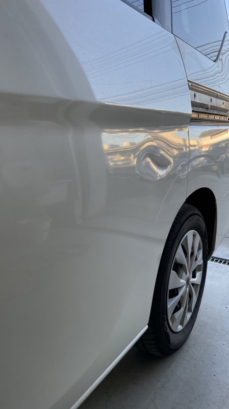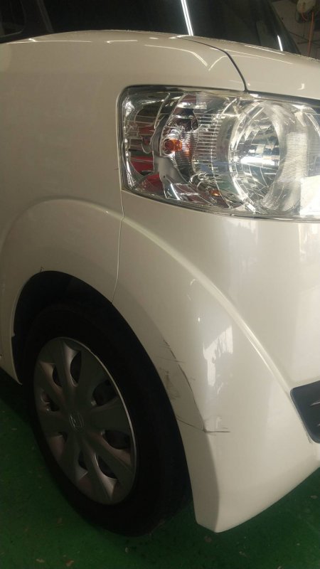 お客様がバックで駐車中に、縁石ブロックに接触しキズとへこみが発生。