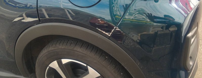 リアフェンダーからリアバンパーにかけてのへこみ修理のご相談でご来店いただきました。