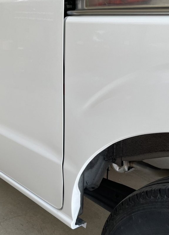 スライドドアは損傷範囲も広いため交換作業を行い、クォーターパネルは修正作業にて対応いたしました。