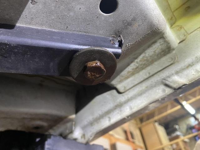 取付に必要なクロスメンバのボルトが錆びています。こちらは新品に交換させて頂きました。
