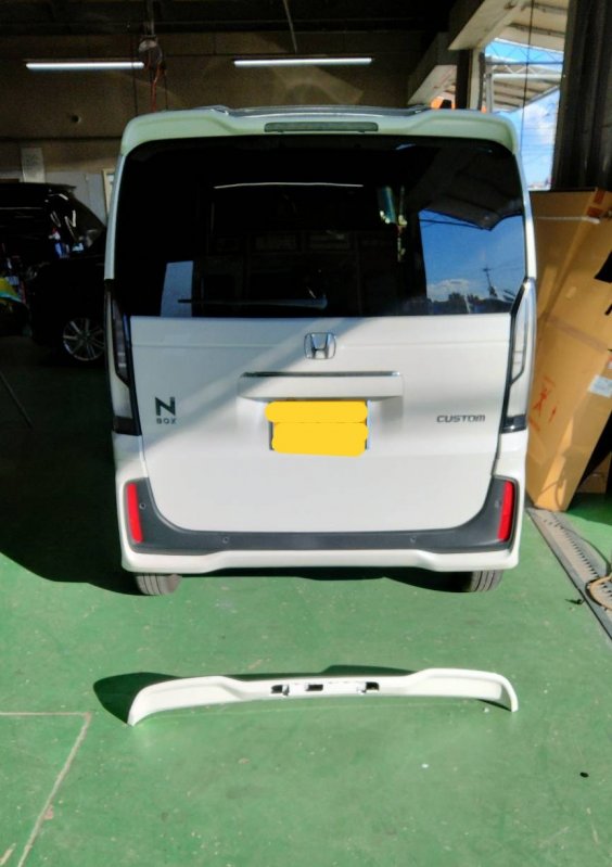 当店のホームページを見て、ご来店、ホンダ・N-BOX リアバンパースポイラー修理の依頼をいただきました。