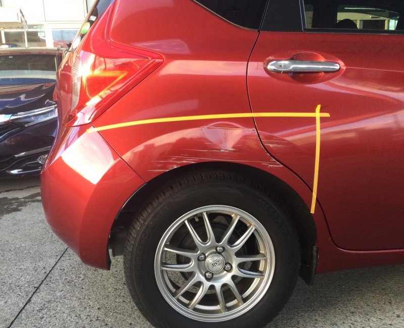 日産 ノート リアドア 擦り傷 板金 塗装 修理 大阪 富田林市