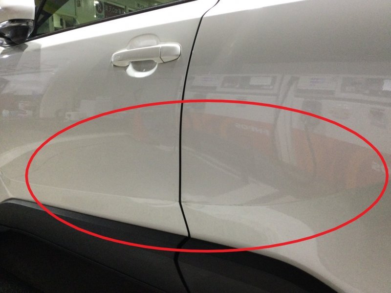 大阪府富田林市|C-HR(トヨタ)のキズ・へこみ直し事例(フロントドアパネル リアドアパネル モールディング交換) フロントドアパネル リアドアパネル モールディング交換 2025年10月07日 - キズ・へこみ直し