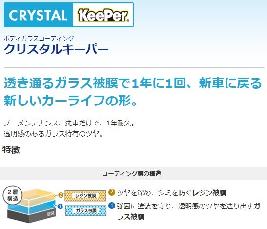 ※コーティングの被膜は塗装の身代わりとなって、外部の攻撃を受け止め塗装を守ります。だから1年に1度、その表面の被膜を入れ替える必要があります。そうすることでいつも新鮮な被膜がツヤを強調しながら、塗装を強力に守り続けることができます。