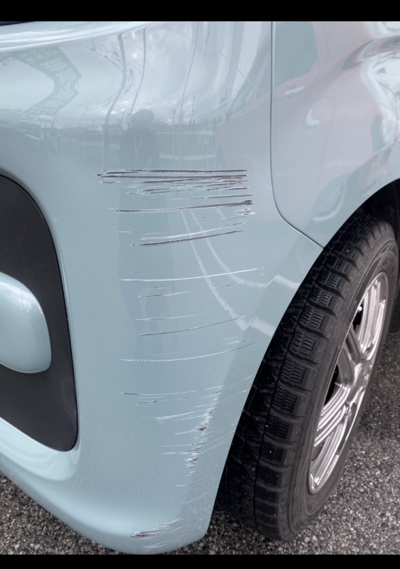 前側のバンパーに大きな線キズがございました。