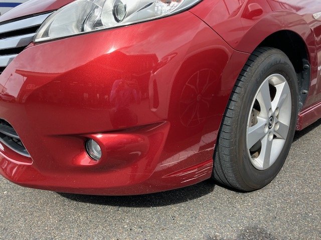 京都 伏見 日産 エルグランド 左側面 フロントフェンダー バンパー キズ へこみ直し