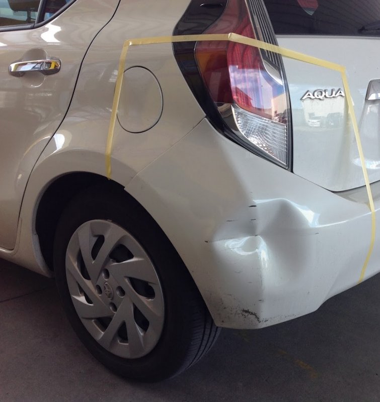 福岡県太宰府市|アクア(トヨタ)のキズ・へこみ直し事例(後ろバンパー キズ へこみ 車 修理 鈑金)