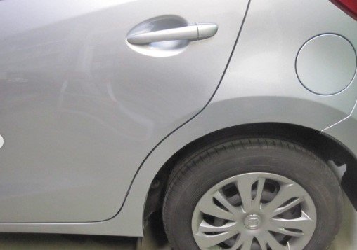 福岡県糟屋郡新宮町|デミオ(マツダ)のキズ・へこみ直し事例(左後ろ タイヤ上(フェンダー) キズ ヘコミ 車 修理 鈑金)