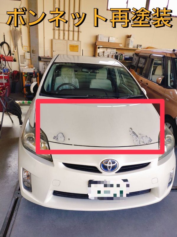 三重県四日市市|プリウス(トヨタ)のキズ・へこみ直し事例(ボンネット再塗装修理) ボンネット再塗装修理 2025年10月30日 - キズ・へこみ直し