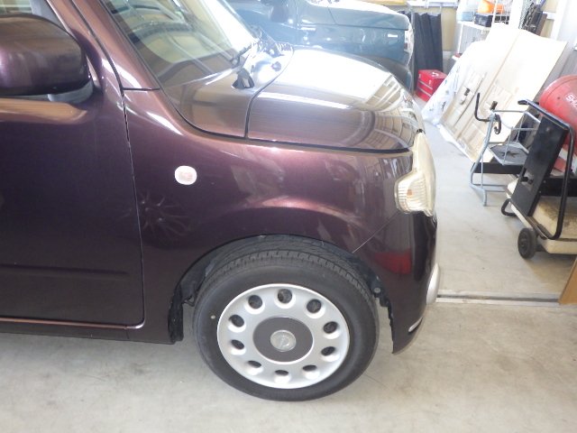石川県 かほく市 ダイハツ ミラココア 右フロント部分 キズ ヘコミ 板金 塗装 車の修理 値段 安い