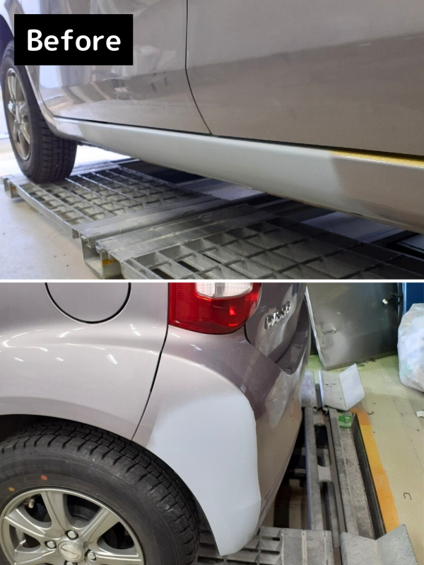 | 修理の箇所・サービス内容 | ロッカーパネル リアバンパー 鈑金 塗装 |
