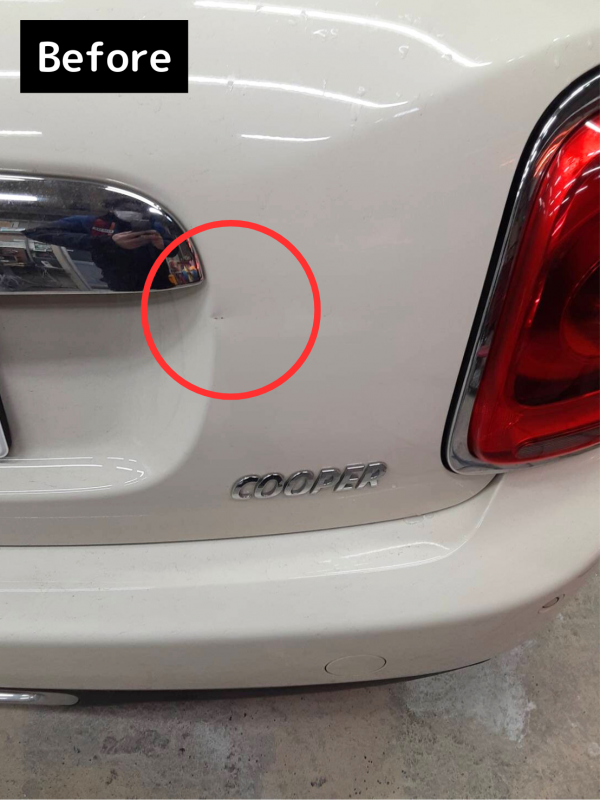 石川県 小松市 MINI ミニクーパー リアゲート へこみ 修理 鈑金