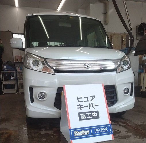 ポリマーコーティング定番のピュアキーパー施工です。お時間約60分。早く出来ることもメリットの一つです。また繰り返し施工することでキレイを持続します。