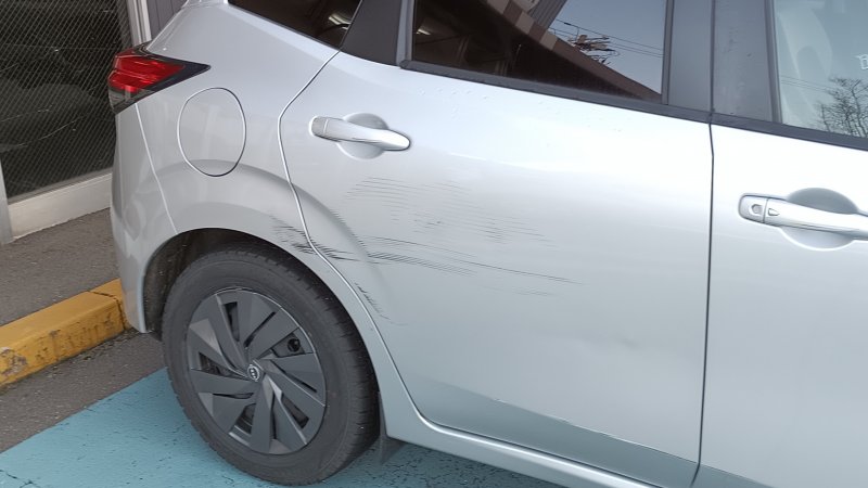 石川県 金沢市 車 トヨタ ライズ 左リヤドア 傷 へこみ 板金 塗装 修理