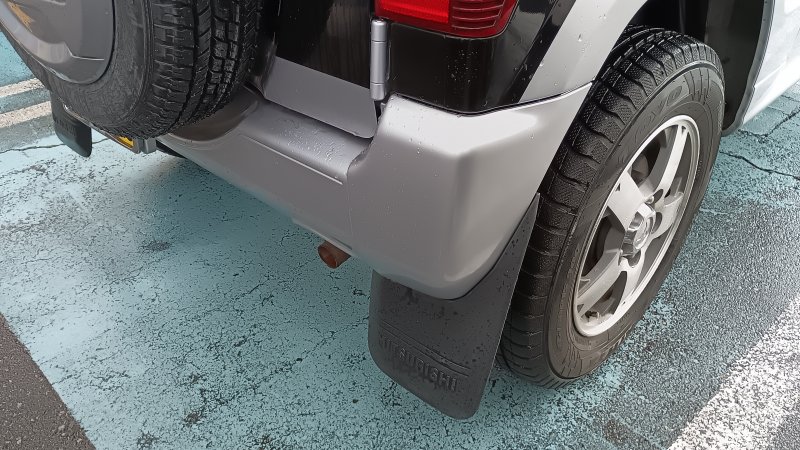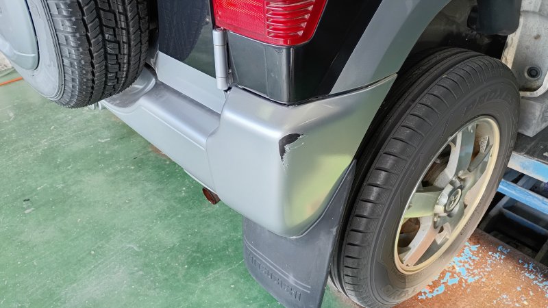 石川県 金沢市 車 三菱 パジェロミニ リヤバンパー 傷 割れ 新品 部品 交換 塗装
