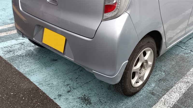 スバルのプレオプラスでリヤバンパーの修理で入庫しました。