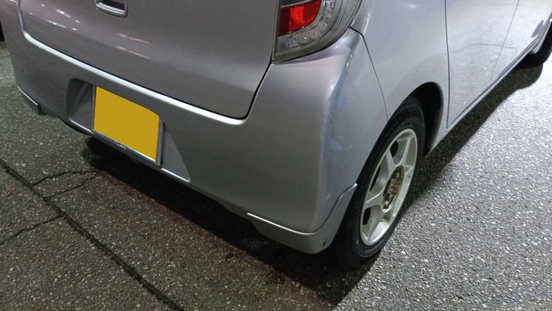 石川県 金沢市 車 スバル プレオプラス リヤバンパー 傷 板金 塗装 修理