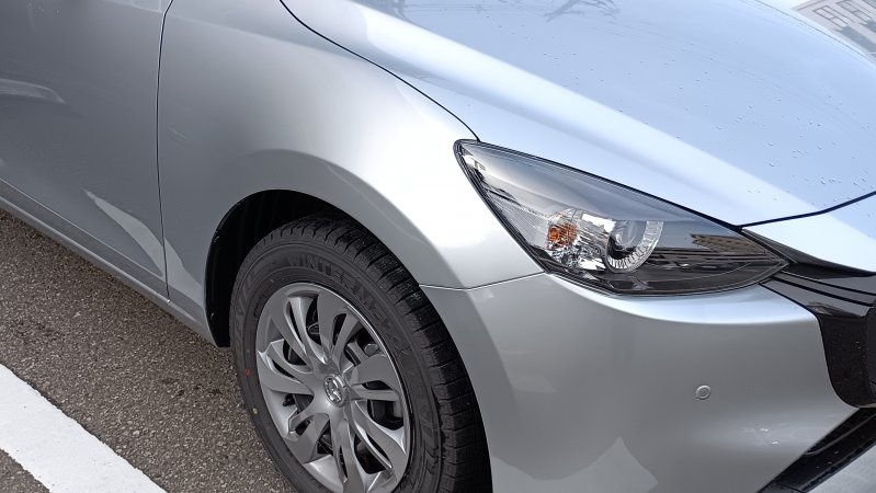 マツダ2で右フェンダーの修理で入庫しました。