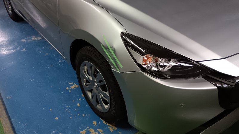 石川県 金沢市 車 マツダ2 右フェンダー 板金 塗装 修理