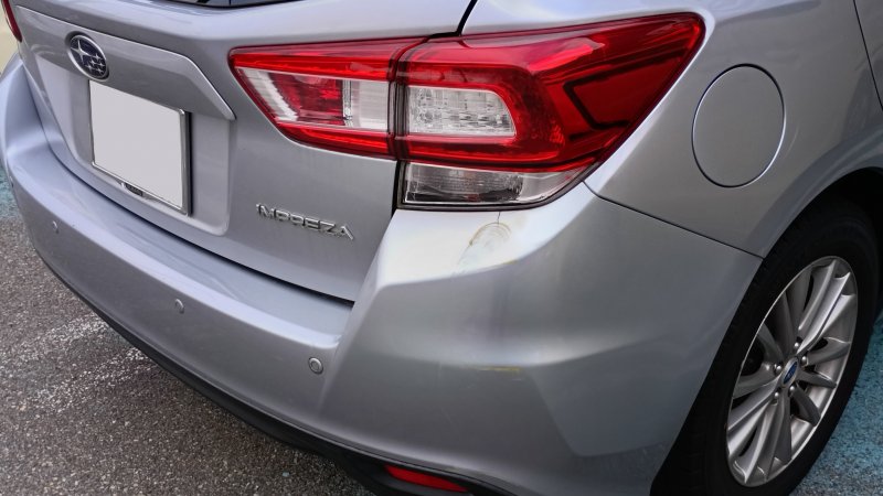 石川県 金沢市 車 スバル インプレッサ リヤバンパー テールランプ 傷 割れ 新品 部品 交換