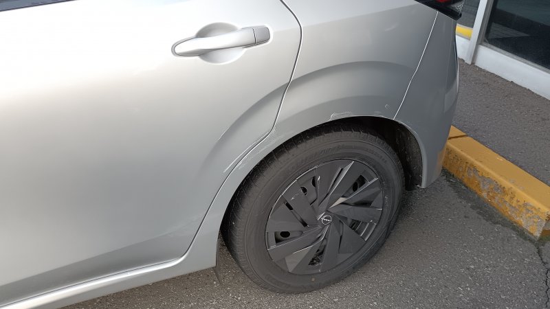 日産のノートでドアとクォーターを擦ってしまい修理で入庫しました。