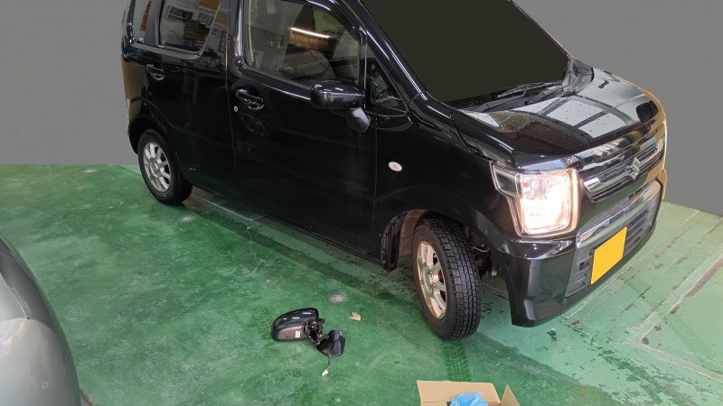 スズキのワゴンRでドアミラーの交換で入庫しました。