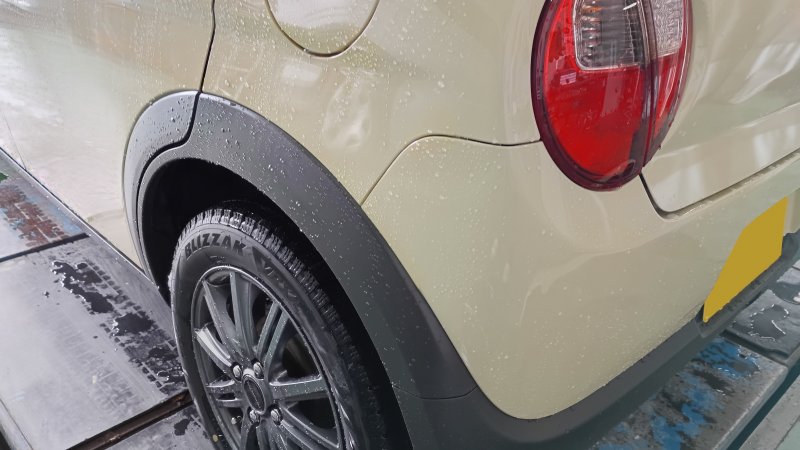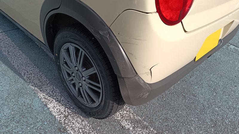 石川県 金沢市 車 スズキ アルトラパン リヤバンパー 傷 へこみ 新品 部品 交換