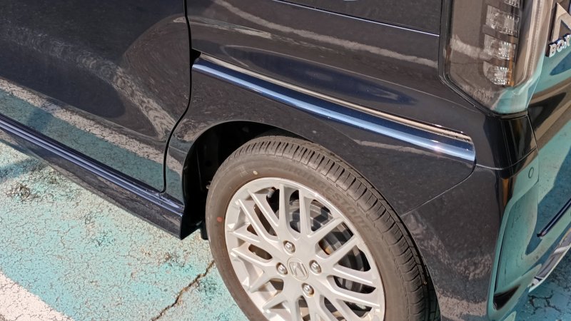 ホンダのNBOXで左クォーターに薄い傷がついており研磨しました。