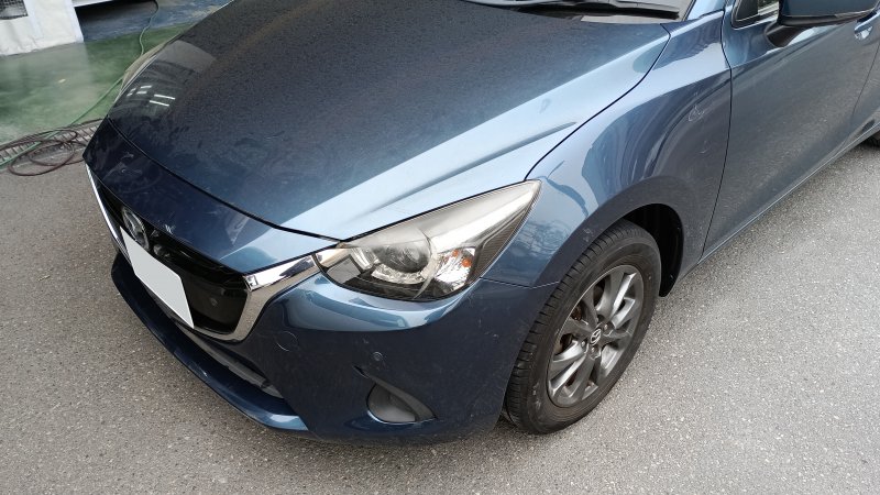 マツダのデミオで左前の修理で入庫しました。