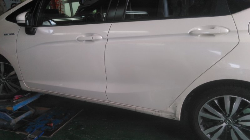 ホンダのフィットでサイドステップの交換で入庫しました。