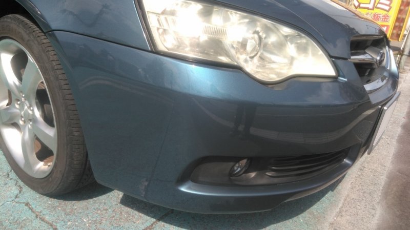 スバルのレガシィでフロントバンパーのすりきず修理で入庫しました。