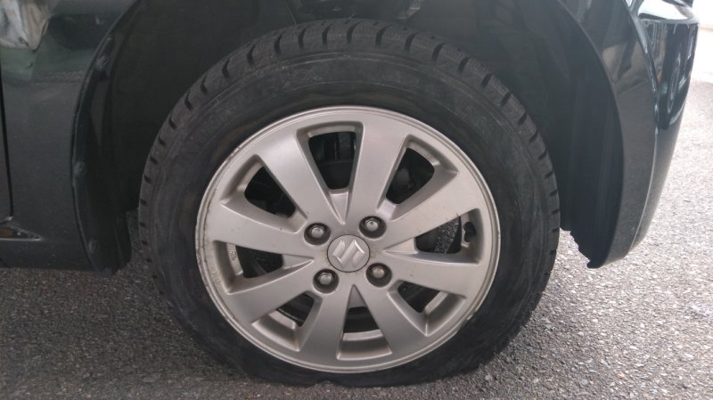 スズキのMRワゴンでタイヤがバーストし交換で入庫しました。