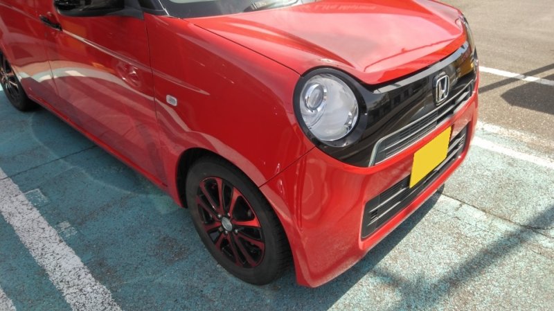 石川県 金沢市 車 ホンダ NONE フロントバンパー 右フェンダー 傷 へこみ 板金 塗装 交換 修理