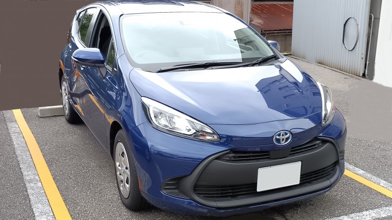 石川県 金沢市 車 トヨタ アクア 左クォーター リヤドア 傷 へこみ 板金 塗装 修理