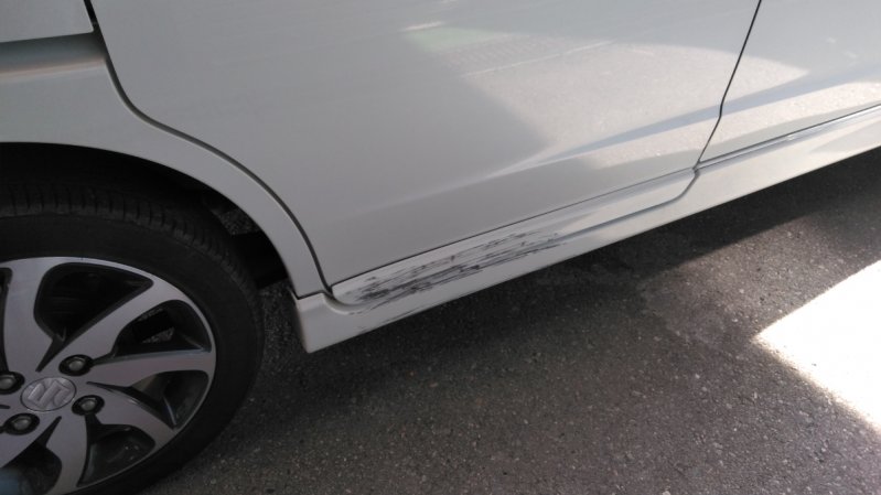 石川県 金沢市 車 スズキ ワゴンR 右ドア 傷 へこみ 中古 部品 交換