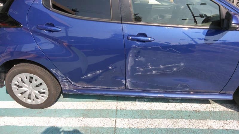 トヨタのヤリスで右側面を擦ってしまい修理で入庫しました。