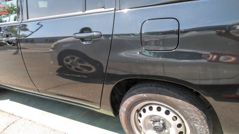 石川県 金沢市 車 トヨタ ヴィッツ 左リヤドア 傷 へこみ 板金 塗装 修理