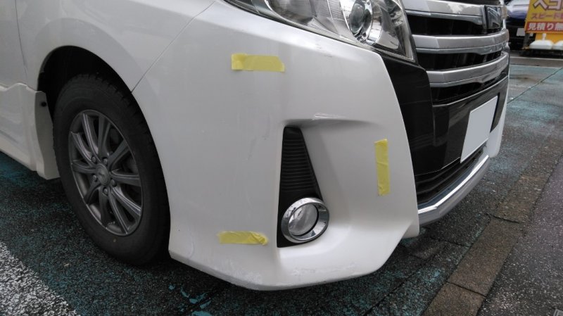 トヨタのノアでフロントバンパーの修理で入庫しました。