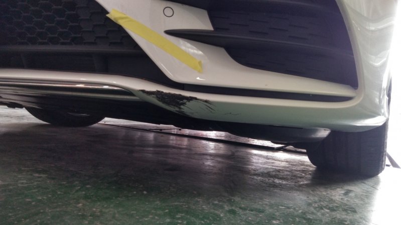 ベンツのAクラスでフロントバンパーをブロックで擦ってしまい修理で入庫しました。