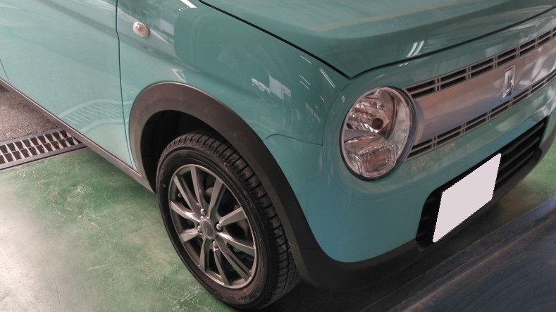 スズキのラパンでフロントまわりを擦ってしまい交換で入庫しました。