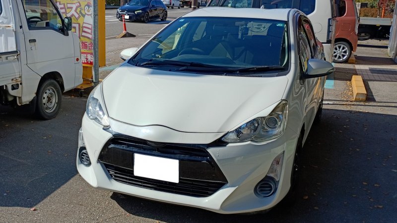 石川県 金沢市 車 トヨタ アクア フロントバンパー 傷 へこみ 新品 部品 交換