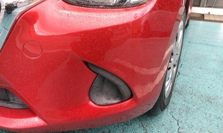 石川県 加賀市 マツダ デミオ フロントバンパー キズ へこみ 修理