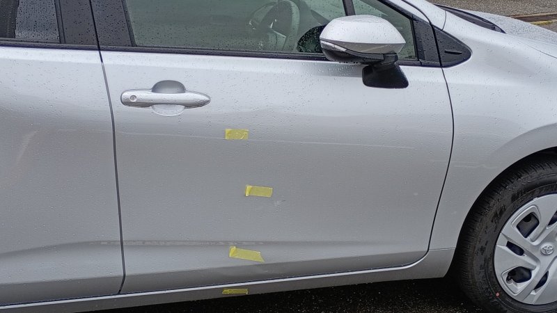 トヨタのアクアでフロントドアの修理で入庫しました。